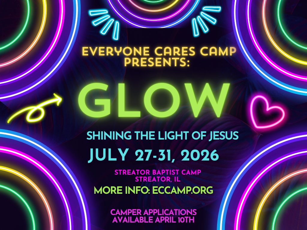 We are thrilled to announce we are returning to Streator Baptist Camp. We are excited about this partnership and hospitality shown to us by the good people in Streator. Our upcoming theme is GLOW and our camp dates are July 27-31, 2026. If you want to see their facilities you can check them out here.